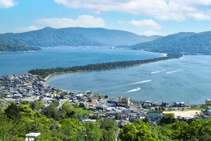 天橋立是日本三景之一,也是京都府最具代表性的觀光地。蔚藍大海、潔白沙灘,以及約5,000株松樹排成的全長3.6公里景觀,彷彿一座通往天際的橋樑,美麗壯觀。