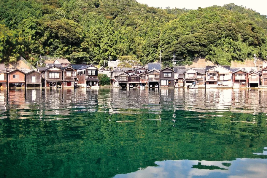 沿著伊根灣岸一字排開的獨特舟屋群,彷彿漂浮在海面上般,營造出夢幻的景致。搭乘觀光特急巴士抵達後,再轉乘伊根灣遊覽船,便能親身體驗這片特別的風光。