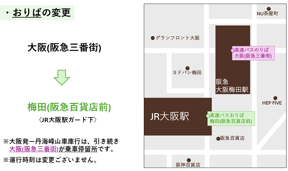 高速バス大阪線 大阪(阪急三番街)おりば変更について