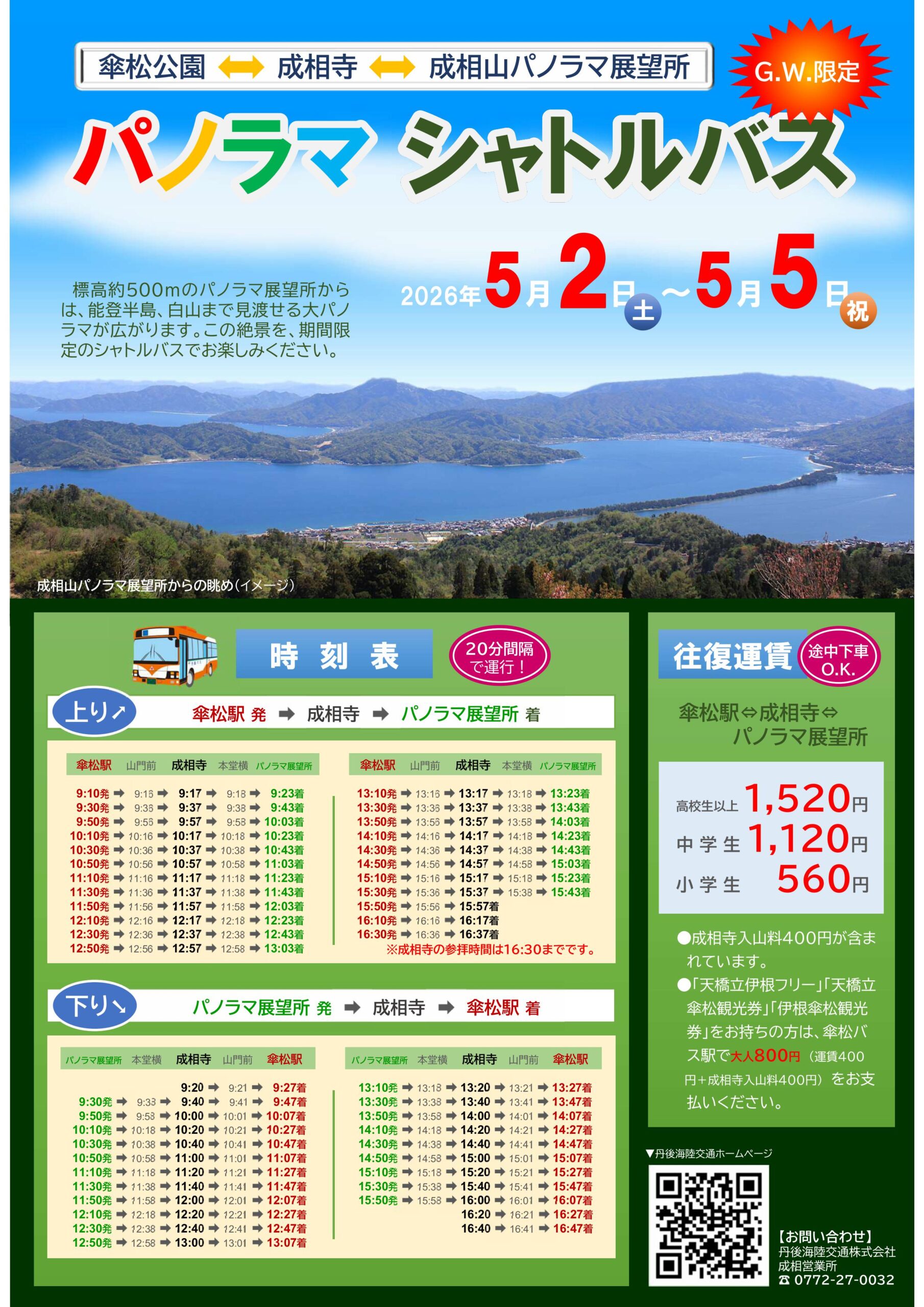 ◎パノラマ展望所行シャトルバスの運行時間
