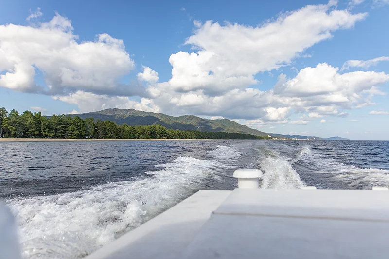 天橋立では、観光船とモーターボートを運航しています。一の宮桟橋、天橋立桟橋、宮津桟橋間の運航に加え、阿蘇海周遊、宮津湾周遊、伊根湾周遊などの周遊コースがあります。