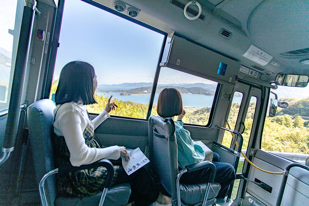 貝原益軒が成相寺まで参詣した道をバスで行くことができます。急峻な山の尾根をつたって走るバスの車窓から見える景色も絶景で、天橋立観光の隠れた見どころの一つです。
