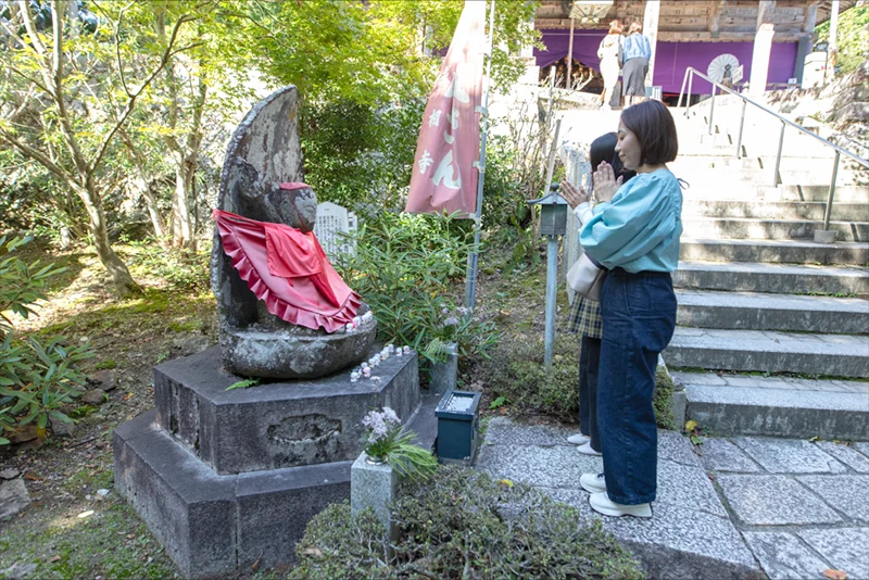 本堂から少し離れた場所に佇む、小ぶりながらも威厳を感じさせる地蔵尊があります。このお地蔵様は、一生のうちに一度だけ、ただ一つの願いを、たった一言で念じれば必ず叶えてくれるという「一願一言」の言い伝えで知られています。言葉を削ぎ落とし、心の奥底にある最も純粋な願いだけを一点に集中させて向き合う時間は、自分自身の本心を見つめ直す貴重な機会にもなるはずです。
