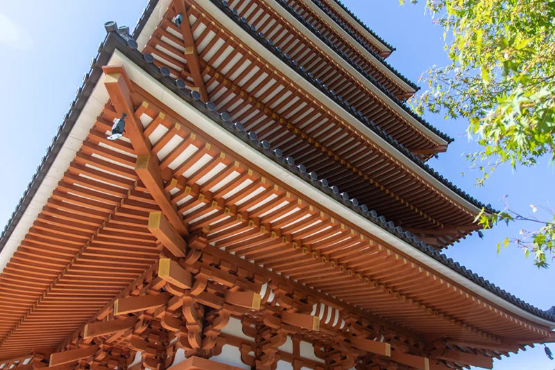 境内の風景に華やかな彩りを添えているのが、1998年に再建された鮮やかな朱色の五重塔です。鎌倉時代の建築様式を忠実に再現したこの塔は、かつての成相寺の隆盛を今に伝えるシンボルであり、周囲の山々の深い緑や抜けるような青空との対比は、息を呑むほどの美しさを誇ります。特に、春の桜、新緑の青もみじ、そして秋の燃えるような紅葉に彩られた五重塔の姿は、いつ訪れても絵画のような完成された美しさを見せてくれます。